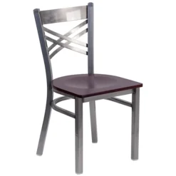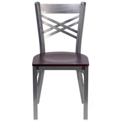 2 Pack. HERCULES Series Clear Coated ”X” Back Metal Restaurant Chair