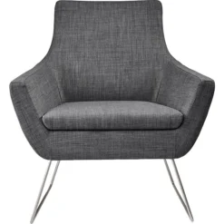 The smooth clean lines of this chair are both modern and industrial. Rich texture in a woven gray fabric provides an interesting contrast to the sleek, smooth steel base. With wide arms and a 22.5″W x 21″D seat, you’ll have plenty of room to lounge and relax.