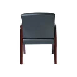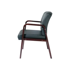 Furnish a waiting room, lobby or other space with this guest chair. The sturdy wood frame provides added durability, while the level glides help keep you steady on uneven floors. With black, leather upholstery, this chair offers convenient cleanup of spills, dirt and other messes, and the mahogany wooden finish makes it a great choice for complementing the style of any room. A padded seat and fixated armrests help give extra support and comfort to those sitting for extended periods of time. This Alera reception lounge series guest chair offers a weight support of up to 250 pounds and is ideal for providing seating for patients, clients and other visitors.