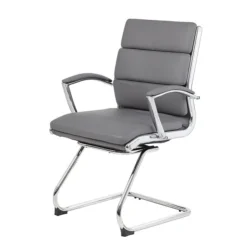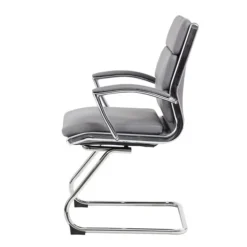 This guest or reception area chair is beautifully upholstered with soft, durable and breathable grey CaressoftPlus™. This sleekly designed chair features a chrome cantilever base, and metal chrome plated arms topped with soft pads.