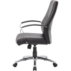 A combination of the proper back angle and a seat tilt lock makes the Boss nylon base drafting stool ideal for proper back support when spending hours working in the office or at home. It features a contoured back and seat, which conforms to any shape. This chair includes leather with nylon upholstery to provide extreme comfort.