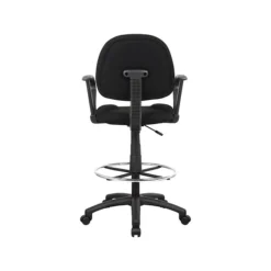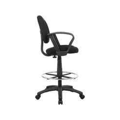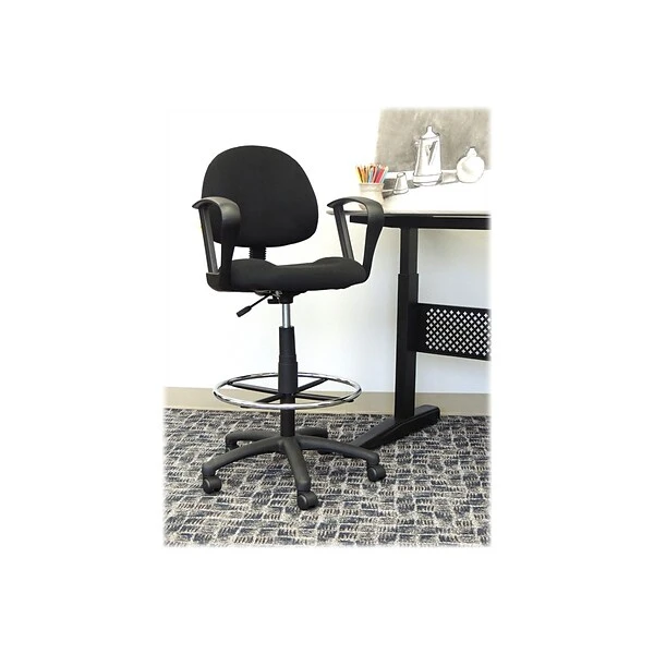Sit for extended periods of time with this drafting stool. The loop arms offer increased support and comfort during long tasks, and the footrest is removable for extra versatility. Rugged nylon tweed material resists wear and tear. An adjustable lever allows you to easily reach various surface heights, while the 275-pound capacity accommodates different body sizes. This Boss Ergonomic Works black drafting stool is constructed with a durable chassis and has a sleek black color, providing a professional appearance.