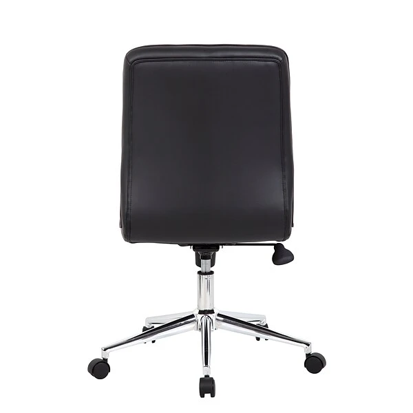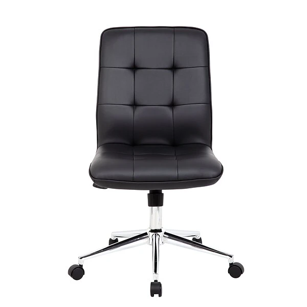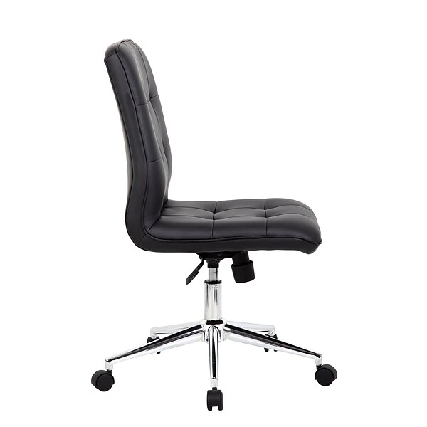 Enjoy a comfortable, stylish seating experience with this Boss Millennial modern office chair. The CaressoftPlus upholstery brings a luxurious feel to this chair, while the button-tufted accents add a handsome finishing touch. The polished five-star base and rolling casters make it easy to wheel your way from your desk to a nearby file cabinet or printer stand. This desk chair features soft, contoured padding for added cushion and support, so you can put in long hours without muscle stress and strain. With pneumatic seat height adjustment, spring tilt and upright tilt lock, this Boss Millennial modern office chair lets you customize the setup to meet your personal preferences.