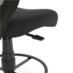 Complete your desk or counter table setup with this mesh and fabric stool. The contoured seat offers generous padding for all-day comfort and support, while the mesh back facilitates the flow of cooler air. Rest your feet and lessen muscle fatigue with the convenient foot ring, and promote proper posture with the adjustable seat height. This Essentials black mesh and fabric stool features a premium base for durability and pairs of 360-degree casters to let you move freely around your work area.