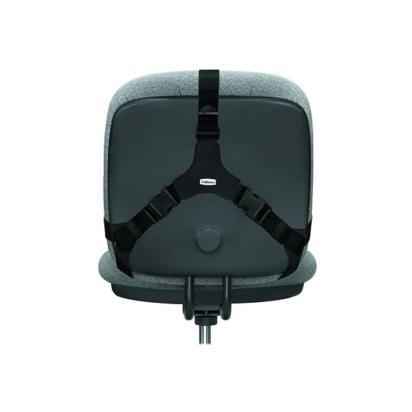 Turn any office chair into ergonomic seating with this Fellowes support cushion. Featuring a memory foam construction, this cushion adjusts to your back to provide the perfect level of support, and the straps are easy to set up and adjustable, so you can add comfort to chairs of varying shapes and sizes. Available in black, this cushion has a professional look that is ideal for the office.