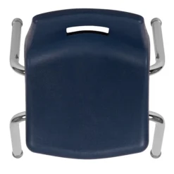 Give kids comfortable seating while being taught in the classroom, daycare or homeschool. The neutral colored school chair will keep children focused on the curriculum. The classroom oriented student stack school chair features a heavy-duty navy seat shell made of superior high-density polypropylene, ergonomically shaped for maximum student seating comfort and 18-gauge bright nickel, chrome plated frame. The seat shell is designed to promote student seating comfort and correct seating posture for enhanced learning. Non-exposed rivets hold the school chair shell to the strong, non-corrosive steel frame while nylon tip glides on each leg help protect delicate floor surfaces. This ergonomic stack chair provides a stylish and durable classroom seating solution. The chair stacks up to 12 chairs high to provide ease of cleaning and maximum storage within the classroom. This well constructed, stackable school chair provides an unparalleled level of durability and value to exceed your classroom seating needs.