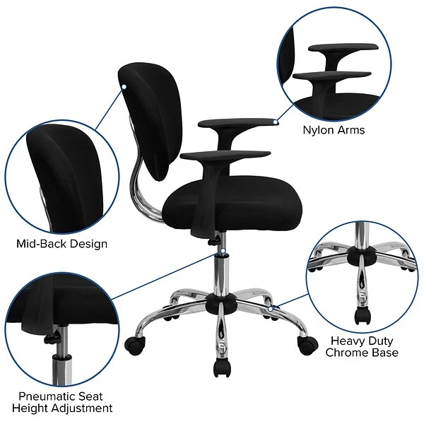 The benefits of a comfortable chair are many and should never be underestimated. This mesh task chair supports you when you’re working long hours to get the job done, in your dorm, at the office and at home. Mesh task chairs offer modern seating for your business or home office. This comfy mid-back office chair supports your mid-to-upper back region. The swivel seat is padded with 2″ of foam and covered with mesh upholstery. Raise and lower the seat using the pneumatic seat height adjustment lever, conveniently located below the seat. The heavy-duty, chrome base with dual wheel casters makes it easy to roll across the floor. Whether you’re sitting in class, studying for a final exam or working to beat a tight deadline, this stylish chair will keep you cool and comfortable throughout your busy day.