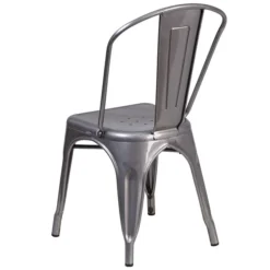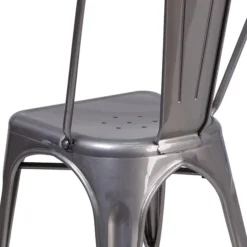 The Clear Coated Chair by Flash Furniture stacks and features drain holes in the seat. Floor glides prevent damage to flooring.