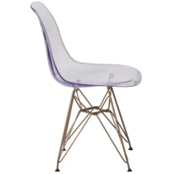 This easily recognizable designed chair will make a great accent or dining chair. The smooth contours of the chair conform to your body allowing you to sit comfortably. The durable matte plastic molded chair and geometric gold metal base provides an artistic appeal.
