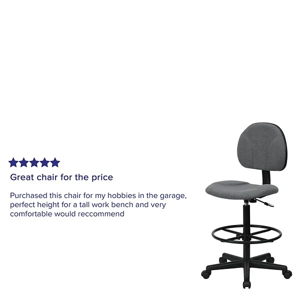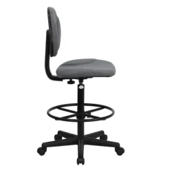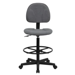 The Flash Furniture gray ergonomic drafting stool’s durable construction and padded seat make it easy to get comfortable. With the seat height and the foot ring both adjustable, the chair makes it easy to get a customized fit. It’s upholstered with a rich gray fabric, giving it a simple, modern look that’s at home in any office.
