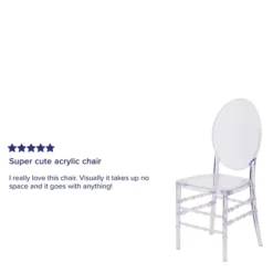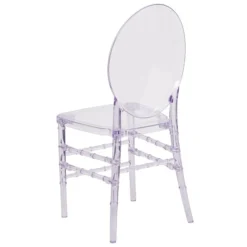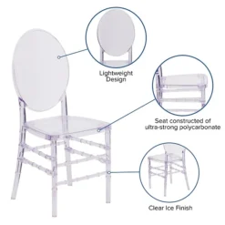 The Elegance Crystal Ice Stacking Florence Chair is ideal for weddings, banquets and special events, whether indoors or outside. Constructed of ultra-strong polycarbonate, it is shock, scratch and water resistant, extremely strong and wobble free. These chairs ship fully assembled, and can be stacked 8 high for storage. With its durable, lightweight construction and classic styling, this beautiful chair will become the prime seating choice for all of your special events, from casual to elegant.