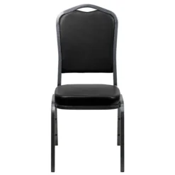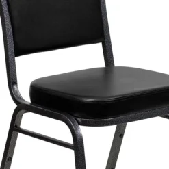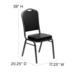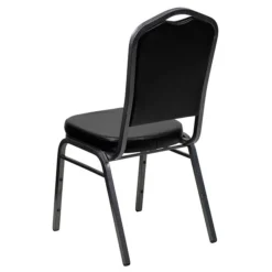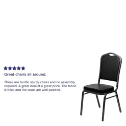 Flash Furniture HERCULES™ Multi-purpose stacking banquet chair has a black 2.5″ thick vinyl seat and features crown back design for comfortable seating. Chair is made from a tough 16 gauge frame with silver vein finish and sold as 4 per pack.