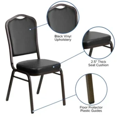 Flash Furniture HERCULES™ multi-purpose stacking banquet chair has a black 2.5″ thick vinyl seat and features crown back design for comfortable seating. Chair is made from a tough 16 gauge frame with gold vein finish and sold as 4 per pack.