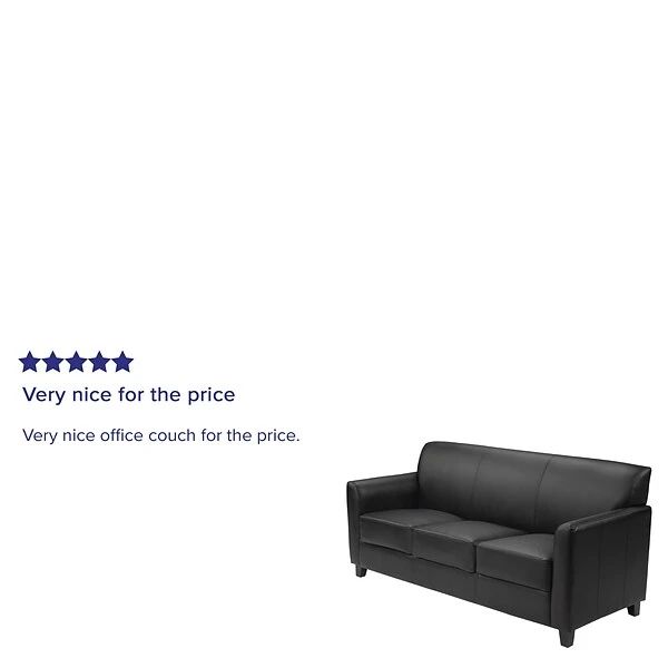 Not only does this sofa feature comfortable cushions, flared arms and raised feet, the hardwood construction frame will give you many years of use. The raised block feet look great and make it easier to clean the flooring beneath. This reception sofa is perfect for the office as well as waiting room seating. The contemporary design of this furniture adapts in several different settings. This upholstered sofa will not only fit in a professional environment, but will add a modern look to your home.