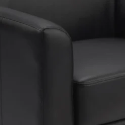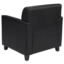 Your lobby or reception area is the forefront of your business and provides that ever important first impression. Providing distinguished and comfortable seating lets your clients know that you value their business. The modern appeal of this soft and durable LeatherSoft upholstered collection will make a lasting impression. Not only does this chair feature comfortable cushions, flared arms and raised feet, the hardwood construction frame will give you many years of use. The raised block feet look great and make it easier to clean the flooring beneath. This reception chair is perfect for the office as well as waiting room seating. The contemporary design of this furniture adapts in several different settings. This upholstered chair will not only fit in a professional environment, but will add a modern look to your home.