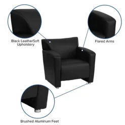 Flash Furniture HERCULESâ„¢ Majesty Black leather chair is made of leather/polyurethane with brushed aluminum feet rendering stylish look. Chair has fixed seat cushion with sturdy hardwood construction and is used for office/home office seating.
