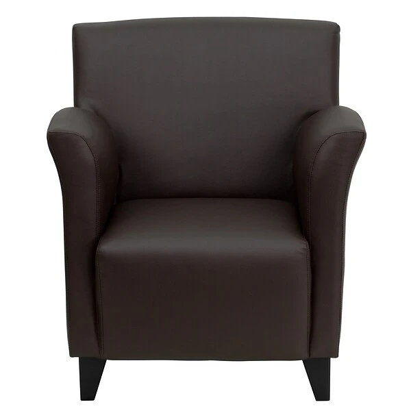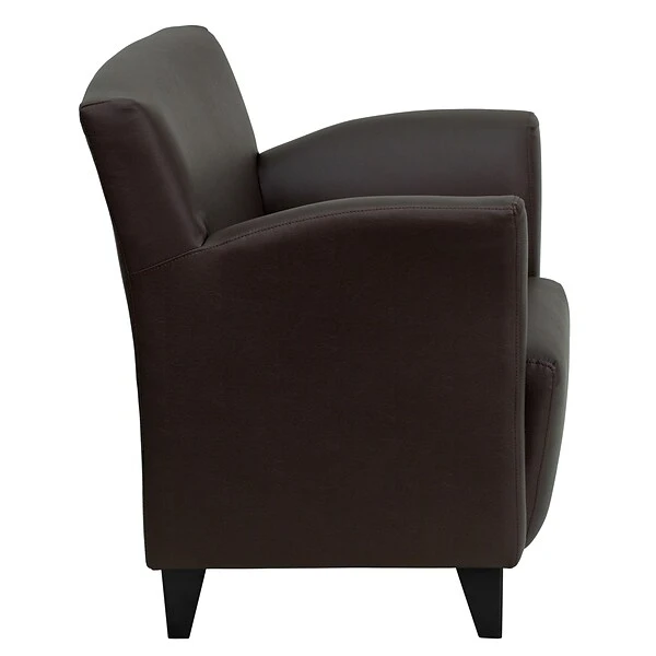 Make the lobby or waiting space comfortable and elegant with the Flash Furniture Reception Chair. With a foam back and fixed arms, this chair provides you with adequate support and comfort. Featuring LeatherSoft upholstery, this brown reception chair will easily blend in with your decor. Stable legs and a metal frame give this chair stability.