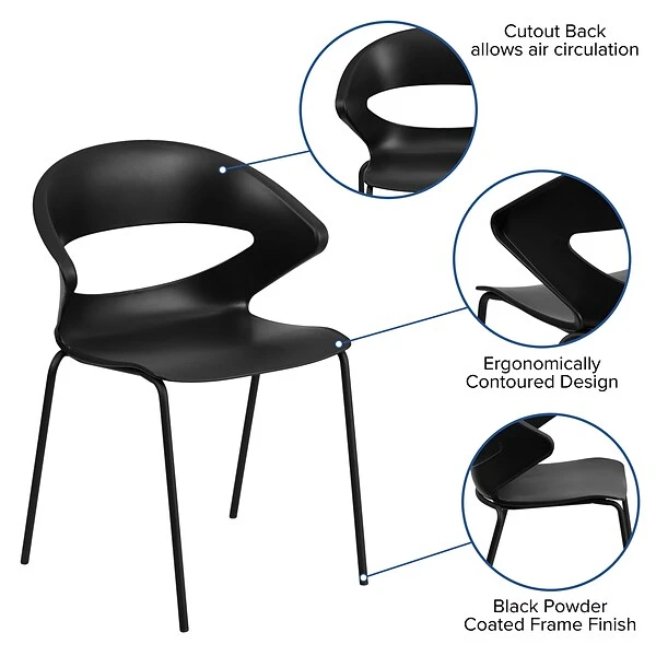 This cafe style chair will add value and offer an attractive presence to your cafe, diner, restaurant, banquet facility or in the home. This chair features a flexible back design that makes is fun and comfortable to sit on. This versatile chair is ideal for both indoor and outdoor functions. With the ability to quickly store the chairs, it allows for the space to be used again for other purposes or when cleaning is needed. This heavy duty plastic stack chair is sturdy in construction to withstand regu lar use and frequent stacking. To make transporting even easier, equip yourself with the appropriate sized stack chair dolly.