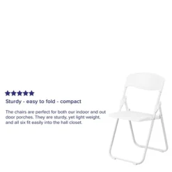 Plastic folding chairs are the choice of many event planners for their lightweight design, ease of cleaning, and versatility for events. This folding chair will make a practical choice in the home or for hosting outdoor events. The textured seat ensures safe and comfortable seating. After an event, you can stack them on top of each other or in a row.
