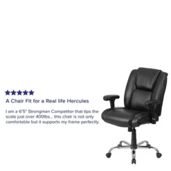Having the proper desk chair in your workspace can provide you with significant health benefits and Big & Tall office chairs are designed to accommodate larger and taller body types. This chair has been tested to hold a capacity of up to 400 lbs., offering a broader seat and back width. A mid-back office chair offers support to the mid-to-upper back region. This office chair features plenty of thick, plush padding to provide greater support. The waterfall front seat edge removes pressure from the lower legs and improves circulation. Chair easily swivels 360 degrees to get the maximum use of your workspace without strain. The pneumatic adjustment lever allows you to easily adjust the seat to your desired height. The adjustable armrests take the pressure off the shoulders and the neck, which minimizes the risk of pain. The chrome base adds a stylish look to compliment a contemporary office space.