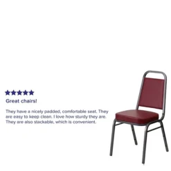 This commercial grade banquet chair with trapezoidal back design fits well in formal and casual settings from wedding ceremonies to corporate meetings and awards banquets.