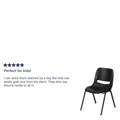Flash Furniture Hercules Ergonomic shell stack chair in black color measures 24 1/2″ x 15 1/4″ x 19 1/4″ and has an elegant black frame. Armless chair for kindergarten – 2 has plastic floor glides for mobility.