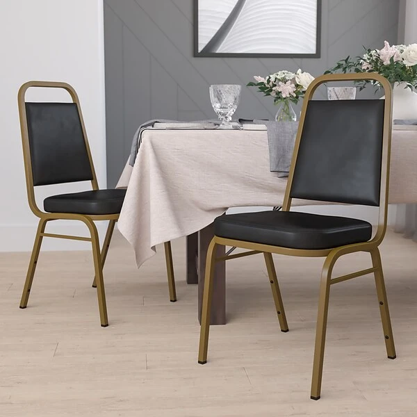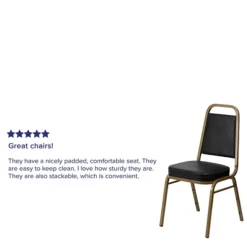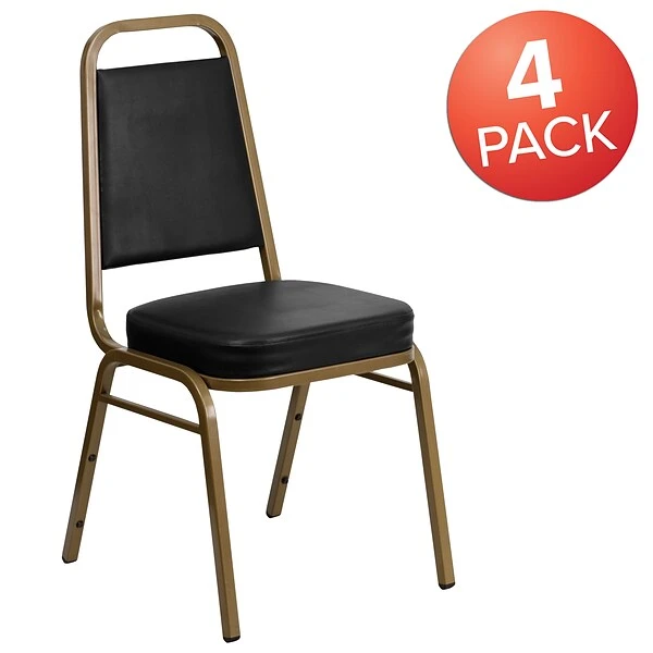 Flash Furniture HERCULES™ trapezoidal back banquet chair is sold as 4 per pack and has a 2.5″ thick fabric seat for comfortable seating and gold frame finish for elegance. 500 lbs capacity chair is made from a tough 16 gauge steel frame.