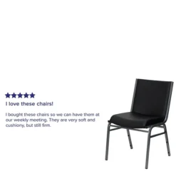Accommodate guests with soft seating by using these black and silver chairs. The 3-inch seat and back padding provide added comfort during long sessions, and the heavy-duty square tubular frame supports up to 550 pounds. These Flash Furniture chairs can be stacked 12 high for storage in small spaces, and the plastic floor guides protect floors from scuffs and scratches.