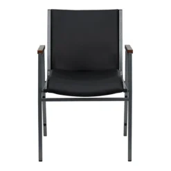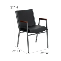 Make gatherings more inviting with this upholstered chair. Its 3-inch-thick padded vinyl seat ensures comfort during long meetings or classes, and the silver finish and cherry-capped arms add professional feel to the room. The plastic bumper guards and 500-pound weight capacity of this Flash Furniture upholstered steel chair prevent damage when forming stacks of the same seats up to 12 high.