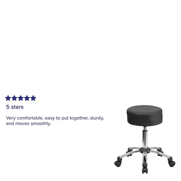 The leather and polyurethane mixture of the LeatherSoft material is long lasting and cleans easily. The reflective chrome base of the Flash Furniture black medical ergonomic stool is sturdy enough to handle up to 250 pounds of weight. Together, the LeatherSoft and chrome materials create a modern and sophisticated look that fits into a commercial and professional environment. In addition, the seat height adjusts to accommodate different sized users.