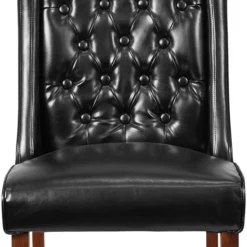 Versatile chair with button tufted upholstery, high density foam padding, and solid hardwood frame. For use in the dining room or office.