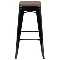 Add exciting furniture to your kitchen and dining room with this set of colorful metal bar stool. The industrial style stool conforms in modern and traditional spaces. Lower support braces doubles as a footrest, and floor glides protect your flooring. Outfit your eatery with these beautiful stools. The classic metal stool with wood seats look extraordinary when matched with metal or rustic dining tables. The bistro stools offer a chic option in contrast to conventional wood seating and are built for indoor use. The space-saving stool with tapered frame stacks up to 10 high for storage. Plastic bumper guards protect the frame finish while the stools are stacked. Complete your dining set by pairing the 4 metal stools with our metal indoor-outdoor bar table. Backless barstools provide a clean look at the dinner table.