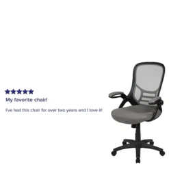 Whether working from home, refreshing your professional office space, or preparing for a marathon gaming session, having the support of an ergonomic chair with lumbar support will help increase productivity in all areas. The high mesh back is ventilated to allow air circulation while the ultra-padded, contoured seat, with mesh overlay, gives all day comfort. This office chair is equipped with flip up arms that can be used in the downward position or placed upright. Tilt lock and tilt tension functionality give a custom recline while the pneumatic seat height adjustment lever and 360° swivel adapts to almost any work surface. The 5-star base with dual casters enables you to move with minimal effort. Assembly of your new chair takes less than 30 minutes with the included materials and a solvent and water based cleaner such as foam will maintain the appearance of this computer desk chair.