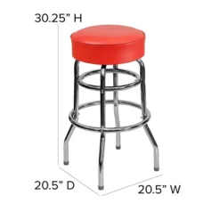 Treat the patrons of your bar, restaurant or pool hall to this superbly designed double ring barstool. The round swivel seat provides easy access and promotes conversation between customers. This commercial grade stool was built to withstand the daily rigors in the hospitality industry, but is still stylish enough for home use. The tubular footrest not only supports your feet, but acts as an additional reinforcement that helps secure the legs. This stool is also easy to clean, upholstered in a durable red vinyl cover. Add this comfortable bar height stool to your kitchen island, pub style dining table or home bar for family and friends to enjoy.
