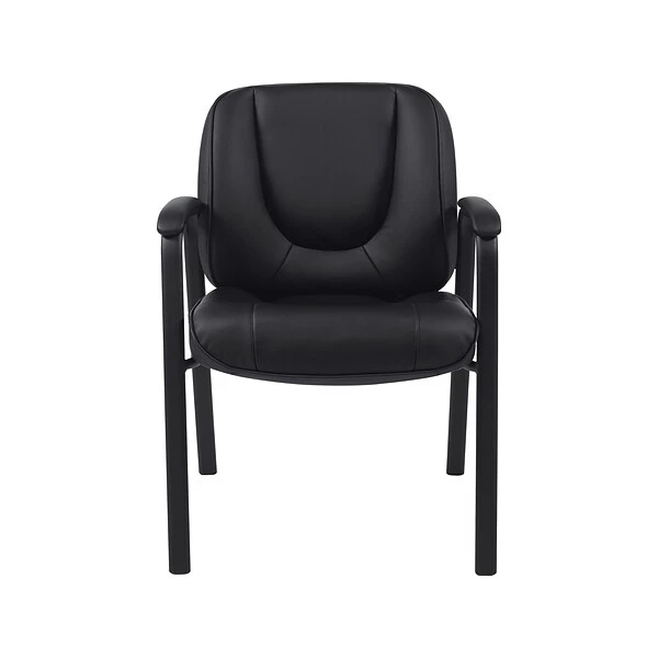 Ensure clients, customers, and patients people are comfortable in this black bonded-leather guest chair. The rigid steel frame is durable enough to handle the rigors of daily wear and tear and heavy use, while the black bonded leather provides a sophisticated look. Featuring padded armrests, this chair provides ample support to forearms and shoulders, while the included step-by-step instructions ensure assembly is fast and simple. This Global Luxhide bonded-leather guest chair boasts four sturdy legs to hold everything firmly in place, while the contoured cushion and thick padding make sitting for long periods of time more comfortable.