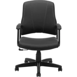 This Global bonded black executive chair features a modern design that stands out as professional, attractive and sleek. Its soft bonded leather upholstery is comfortable against the skin and durable enough to last. This Global luxhide high-back executi ve chair is features adjustable seat height and tilt tension for all-day comfort.
