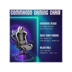 Be fully immersed in your virtual experience with the Hanover Commando gaming chair. Adjustable seating and thick padding allow you to sit back comfortably while your reflexes remain sharp for hours at a time, perfect for online tournaments or late-night raids. With striking two-tone color, this chair will really pop on stream and have viewers sure of your top-notch gaming skills. Don’t let a top-of-the-line computer be underappreciated in a run-of-the-mill office chair. Up your legitimacy with the perfect final touch to your gaming equipment with this ergonomic Hanover Commando gaming chair.