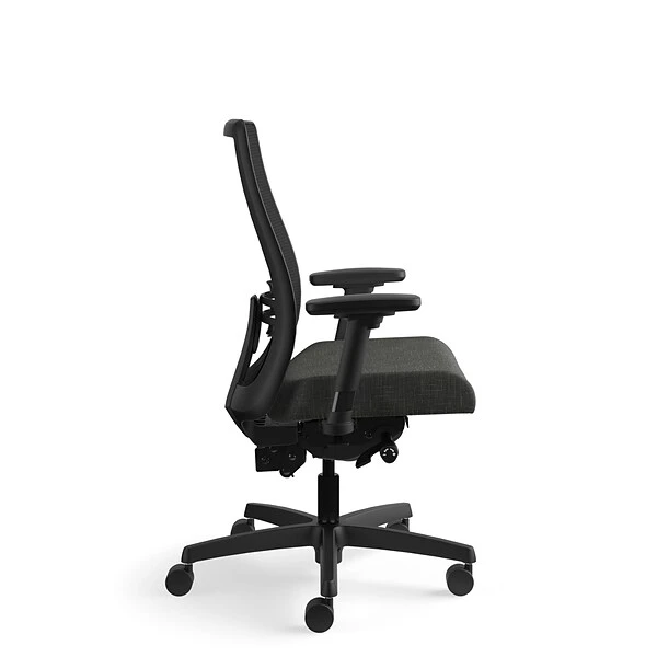 Endorse is The HON Company’s most adaptable seating collection. This mesh, mid-back task chair features adaptable comfort geometry, plus the added benefit of an easy-to-use built-in lumbar adjustment for exceptional lower back support. Synchro-tilt promotes circulation and spinal alignment, and the standard pneumatic height and seat glide controls accommodate people of varying heights. Adjustable arms help support the forearms and shoulders. The ilira-stretch back material provides natural ventilation. Warranted for users up to 300 lbs. Frame and back mesh are black and seat upholstery color is Starry Night.