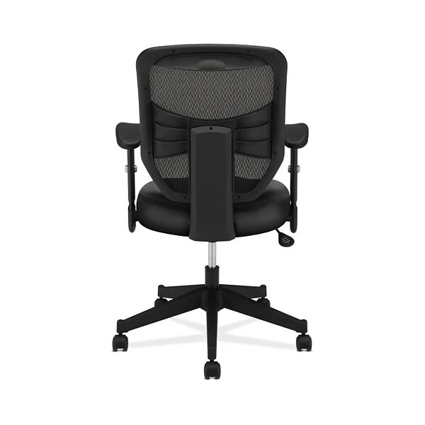 A waveform seat and height-adjustable padded arms give this chair an upscale feel at a compelling price. Seat upholstery is Black SofThread leather mesh. Back mesh, frame and base color is Black.