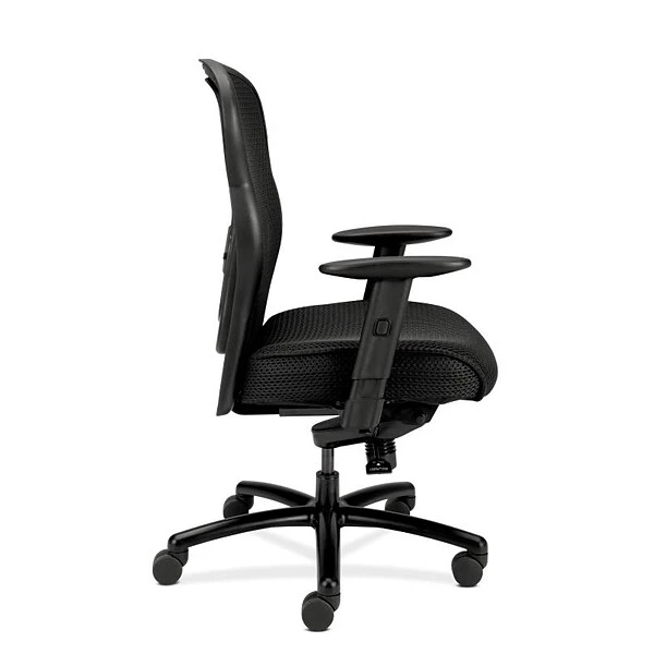 SofThread leather upholstery, knee tilt control, adjustable lumbar support, and height- and width-adjustable arms give this chair an upscale feel at a compelling price. Seat upholstery color is Black and back mesh color is Black.