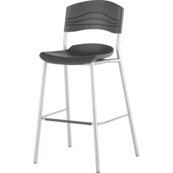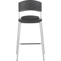 Iceberg® CafeWorks Bistro stool in graphite color measures 44″ x 23″ x 22″ and has blow molded high density polyethylene seat pan/back. Stool features heavy gauge steel frame for long lasting durability.