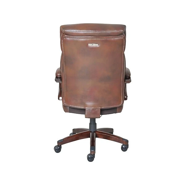 Give your workspace an air of sophistication with this La-Z-Boy Bradley executive chair. The soft bonded leather upholstery offers a rich, inviting texture, while the warm color scheme delivers classic style. The elevated headrest, built-in lumbar support and curved waterfall seat provide all-day comfort. This desk chair features simple controls, so you can adjust the seat height and tilt tension to meet your personal preferences. A sturdy five-star base and rolling casters make it easy to move this chair from your desk to a nearby filing cabinet, credenza or printer stand. Complete with rich wood-finish accents, this La-Z-Boy Bradley executive chair brings CEO-worthy good looks to your corner office.