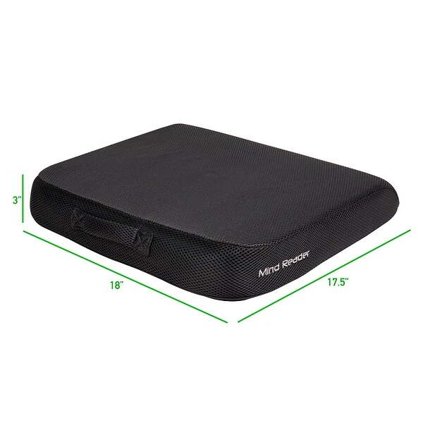- Dimensions: Perfect for home, work, or travel, the memory foam seat cushion measures 18 long x 17.5 wide x 3.25 inches tall (45.72 x 44.45 x 8.25 centimeters) and weighs 2.14 lbs (0.97 kg)