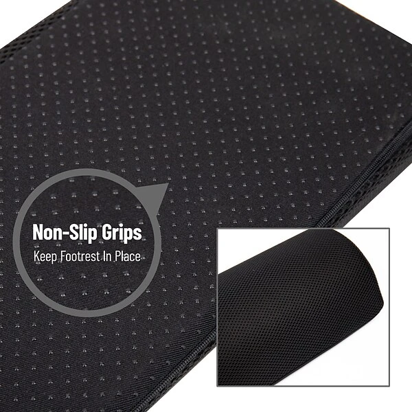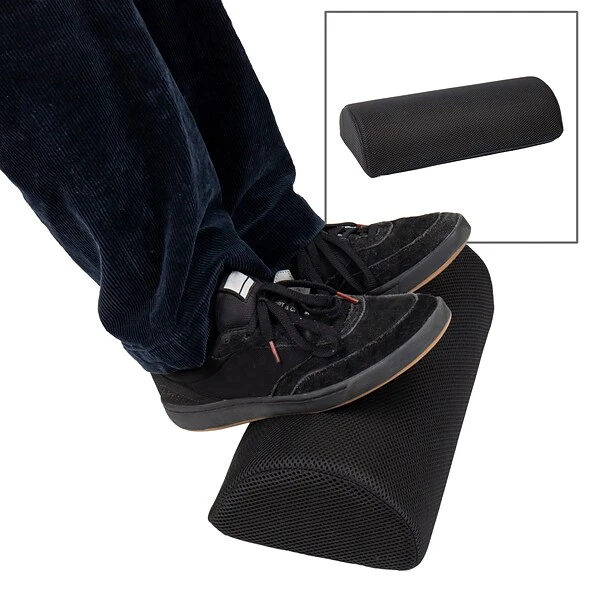 Elevate Your Feet As You TypeThe small but mighty cushion can easily go wherever you go to alleviate back strain and leg discomfort when you’re working, studying, or watching TV. The grip pattern on the bottom of the foot rest prevents slipping and sliding while sitting at your desk. There is no assembly required, so when you’re ready to use the single foam foot cushion, place it where you can reach it comfortably. For best results, avoid placing the cushion on carpeted areas. A grip pattern on the bottom of the foot rest prevents slipping and sliding on smooth surfaces.Before ordering the foot cushion, double-check the measurements to know your feet will fit perfectly on the footrest to reap the benefits of proper positioning as you sit. To clean the cushion, unzip the protective cover to wash it. The breathable mesh cover keeps the core of the footrest secure and allows easy cleanup.Your memory foam footrest can pull double duty as a back rest or arm rest, making it a must-have for your home, dorm, or office. When you’re not using your foot rest, slide it under your desk or table for out of the way, quick storage.A lightweight foam foot support cushion makes a great gift for a student, co-worker, or teacher.