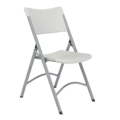 - Grey 19 gauge steel frame with steel underbrace supporting the blow-molded plastic seat and back