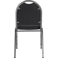The 9200 Dome-Back stack chair is durable and classy enough to use in your busiest social setting, be it a dining room or corporate banquet hall. It features a strong square 18-gauge steel frame plus an under-seat H-shaped brace for extra support. The seat features supremely comfortable and spacious 2″-thick high-density foam padding with easy-to-clean vinyl upholstery or institutional grade fabric, and a waterfall-style edge. Plywood core within both the seat and rounded backrest which has a built-in handle for easy moving and stacking. Fortifying stacking bars and twelve plastic bumpers protect the powder-coated paint finish from scratches when the chair is stacked (up to ten units high).
