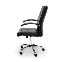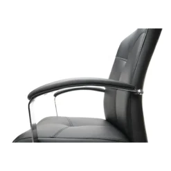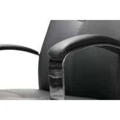 Soften the daily work grind with this ergonomically styled conference chair that exudes luxury. This office chair features sleek and smooth SofThread leather, a quality polyurethane vinyl that expertly mimics the look and softness of leather but offers the durability you need in a conference chair. The fabric is stain-resistant and boasts a sleek black hue to ensure pairing ease. Generously padded as well as adjustable, this Essentials conference office chair is built with day-long comfort in mind.