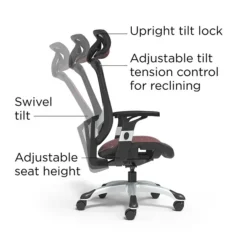 Implement an ergonomic seating solution for your office with this maroon multipurpose chair. The included tilt tension knob lets you calibrate the tilt and recline resistance to your desired configuration, while the adjustable seat and armrests optimize your seating position for correct posture. Featuring a high-quality frame and upholstery, this chair offers durability, and adherence to ANSI/BIFMA standards delivers reliable performance and safety. The customizable headrest offers reliable support for your head, while the adjustable lumbar feature fully accommodates your body shape for relaxing comfort. This FlexFit Hyken mesh computer and desk chair has an upright tilt lock to enable or disable the recline function.