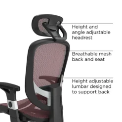 Implement an ergonomic seating solution for your office with this maroon multipurpose chair. The included tilt tension knob lets you calibrate the tilt and recline resistance to your desired configuration, while the adjustable seat and armrests optimize your seating position for correct posture. Featuring a high-quality frame and upholstery, this chair offers durability, and adherence to ANSI/BIFMA standards delivers reliable performance and safety. The customizable headrest offers reliable support for your head, while the adjustable lumbar feature fully accommodates your body shape for relaxing comfort. This FlexFit Hyken mesh computer and desk chair has an upright tilt lock to enable or disable the recline function.