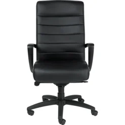 With black leather upholstery and a streamlined look, this chair is perfect for use in your executive office or at the head of the table in your boardroom. Molded cushions add a luxurious look while giving you added support through long meetings with staff and clients. Adjustable Comfort